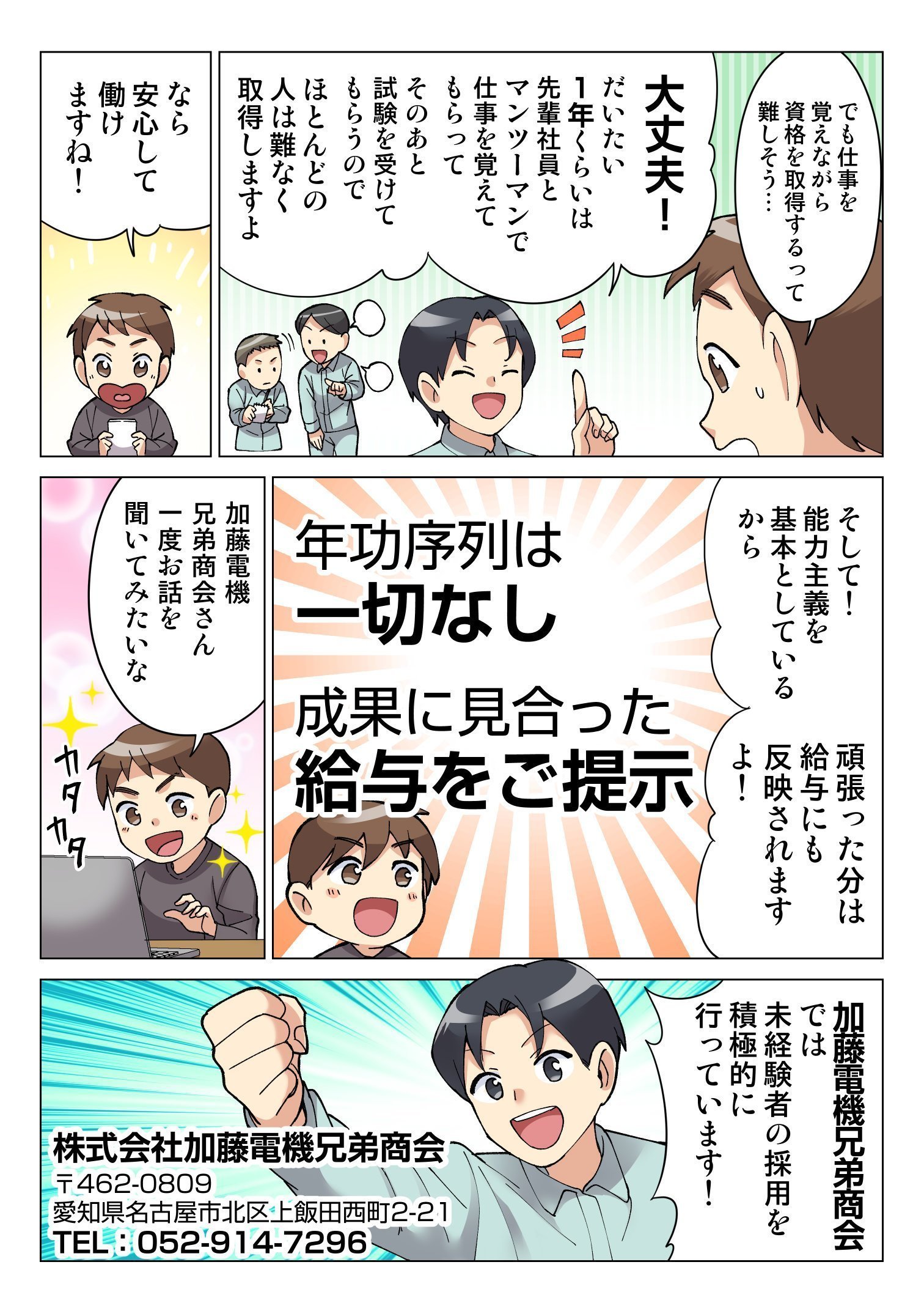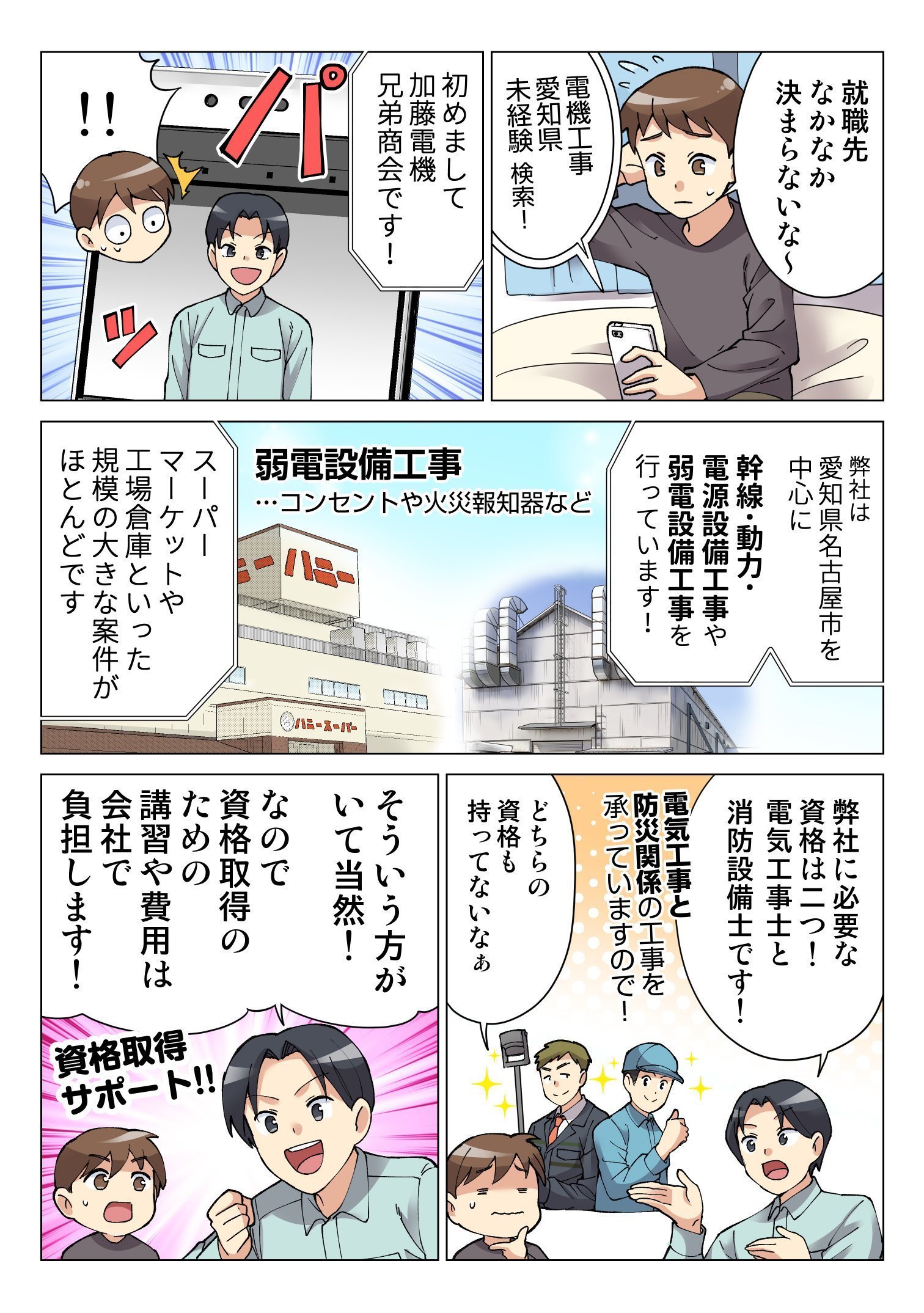 加藤電機兄弟商会での働き方や、特長をマンガでご紹介しています!